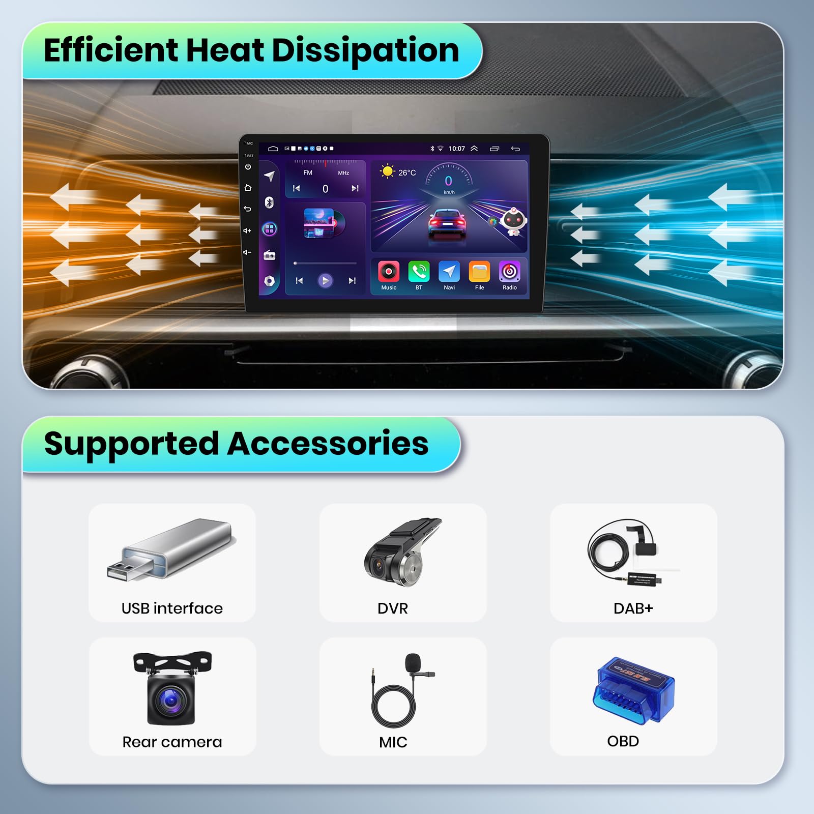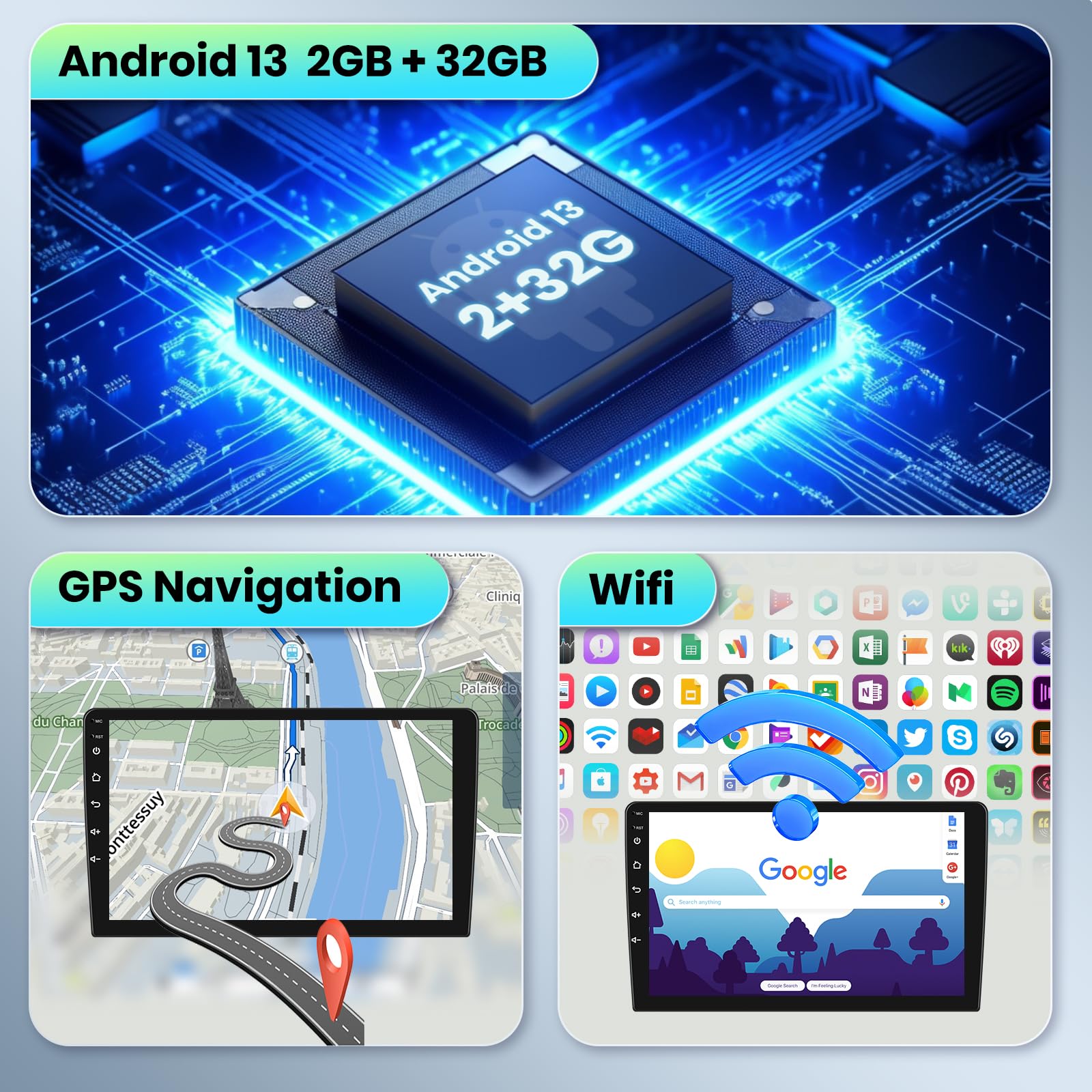 Android-Autoradio mit Android 13-Betriebssystem, 2 GB RAM, die schnell laufen, und 32 GB ROM, um mehr APPs zu installieren, ist es bequem zu bedienen, gerade wie mit Ihrem Tablet im Fahrzeug.